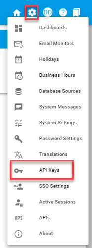 Choose the API Keys icon in the Settings menu (the gear icon in the upper-right corner).