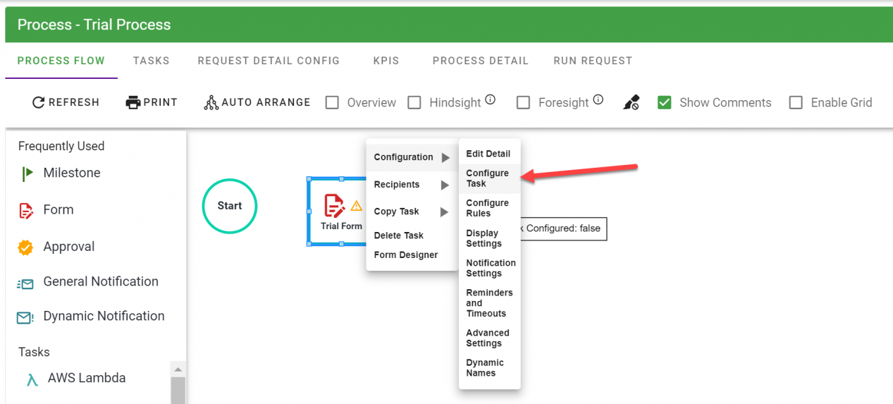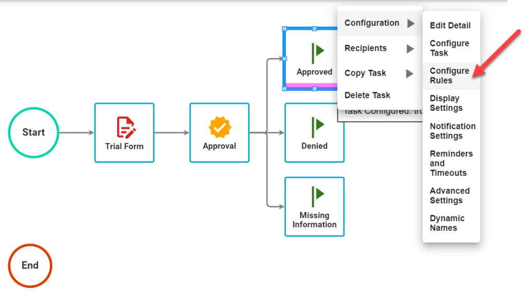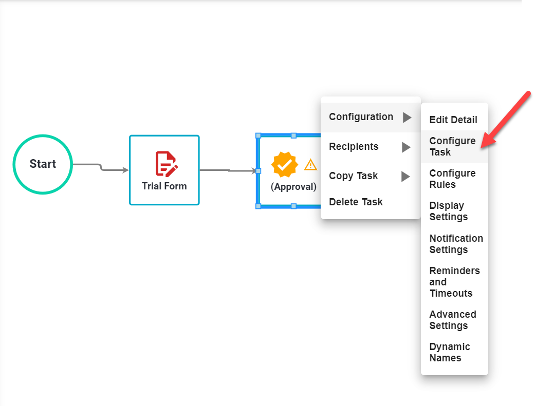- Right click on the Approval task and select Configuration / Configure Task