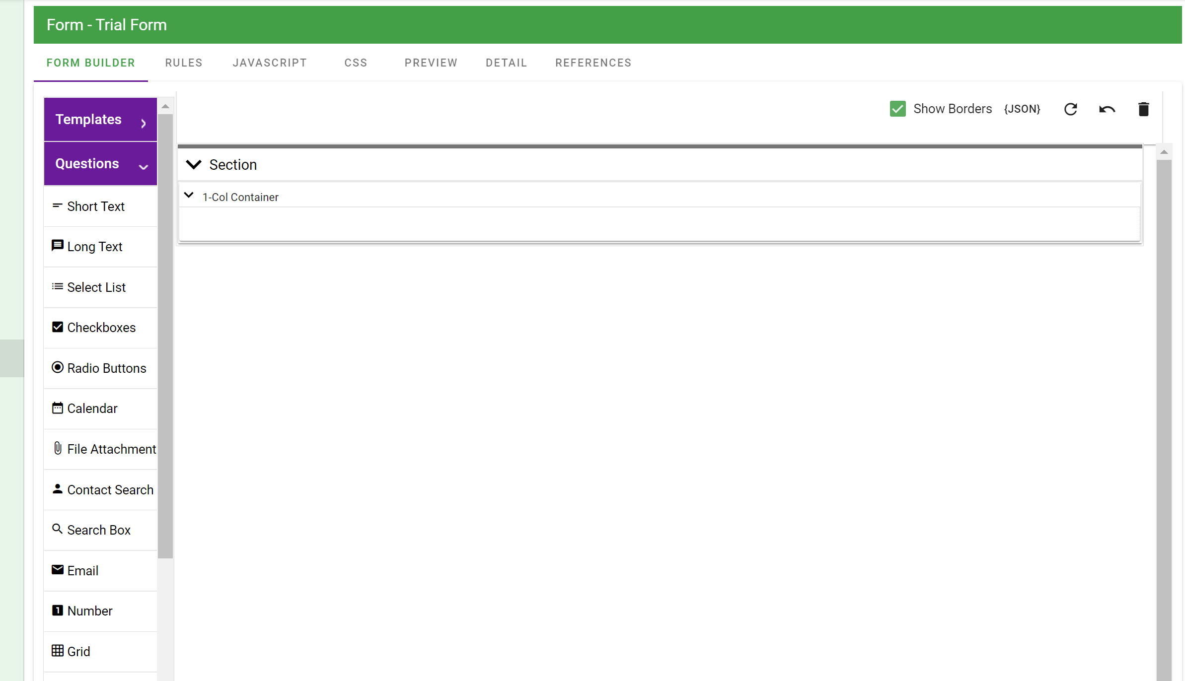 - Save the form. You will then see the Form Builder screen:\