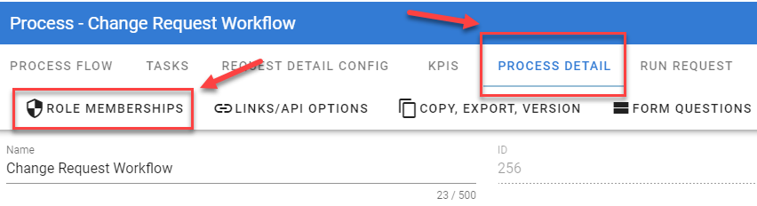 If we were to navigate to a process within the Information Technology category and open the process, you will notice the Role Memberships icon associated with the process: