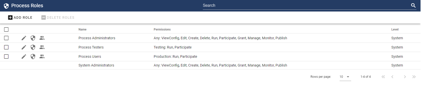 To add the new Process Monitor role, which will allow Monitor Permissions for a process, select the Add Role button: