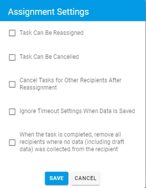 The Assignment Settings area provides additional control over what a given recipient or set of recipients can do once they have been assigned to a task.