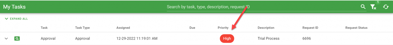 By assigning a priority to a task, it will display the priority text (High, Medium, Low) for the task to the end user on his/her for any widget that displays open tasks.