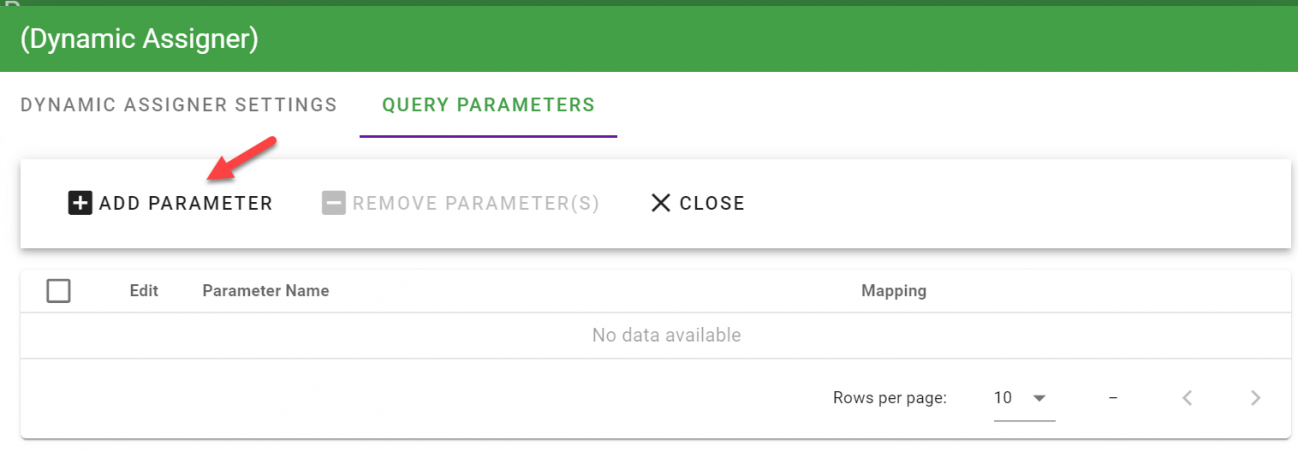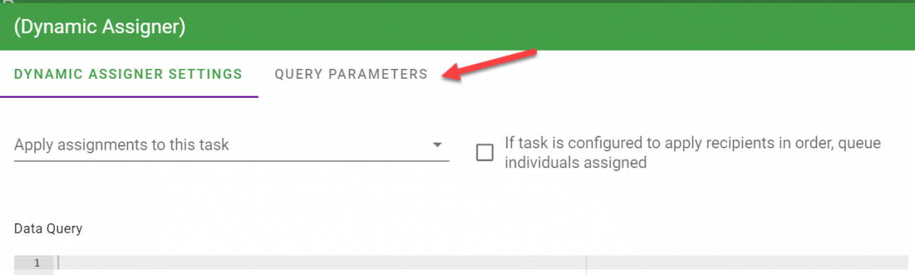 To set the Query Parameters, or map specific Data Values from the request or request related information for use in the assignment, click on the Query Parameters tab:
