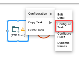 Here, we have added the FTP Push task type to the process. Next, we need to select ‘Configure Task’ from the pop-out menu of the task.