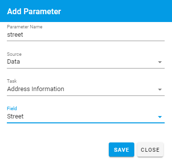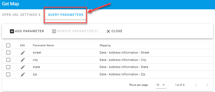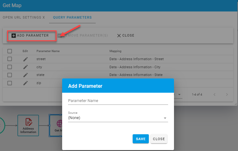 Map each parameter to the source of the data within the request and click ”Close ” when complete.