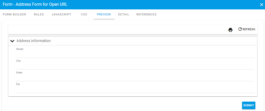 At the onset of the request the user will enter the address information as part of a ”Address Information Form.”