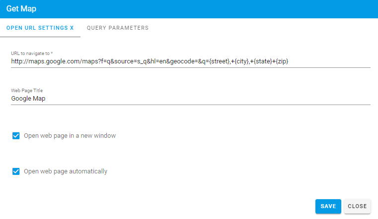 The Open URL task launches a specific URL as part of a process flow. The site can be launched in a new window and can reference remote or internal URLs. Also, data from the request can be passed using parameters.