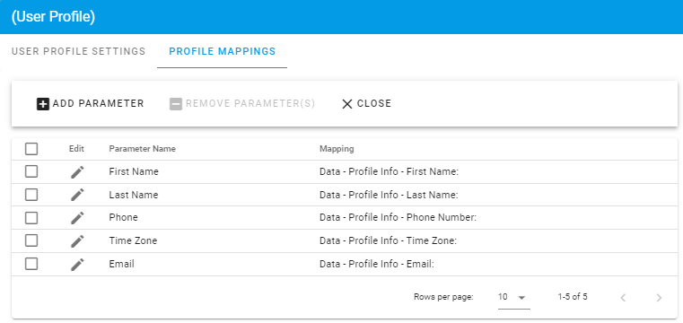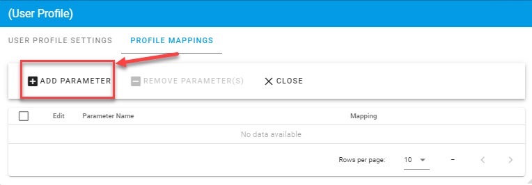 Then, select the Add Parameter button so you can start mapping which contact fields will be updated from the Profile Form. If you wish to create new user accounts, be sure to provide a default password by mapping a default password value from a short text question on the form to the Password attribute of the new user account.