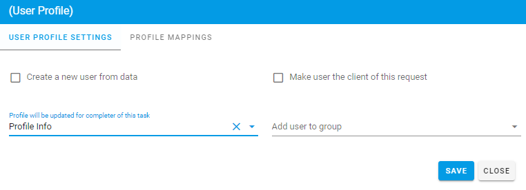 | Profile will be updated for completer of this task | Select List | No | The completer of the chosen task will be the user whose profile is updated (if not creating a new user) |