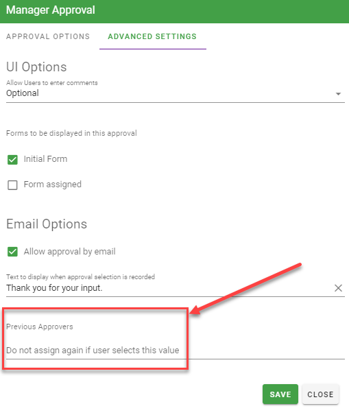 Previous Approvers Configuration