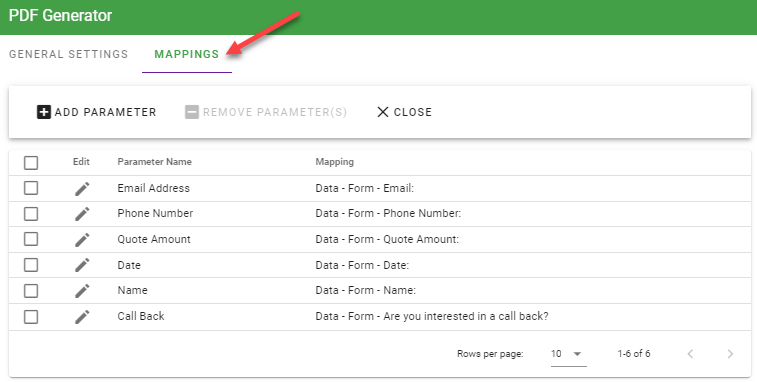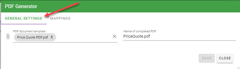 Select the “Mappings” tab to complete mapping your PDF Generation task:
