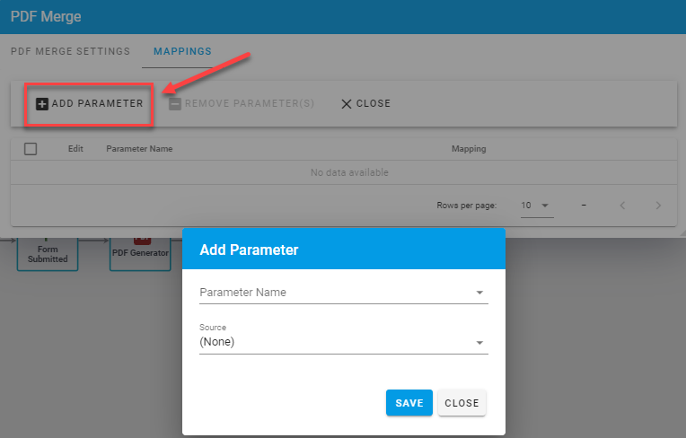 To add a mapping click on “Add Parameter”.