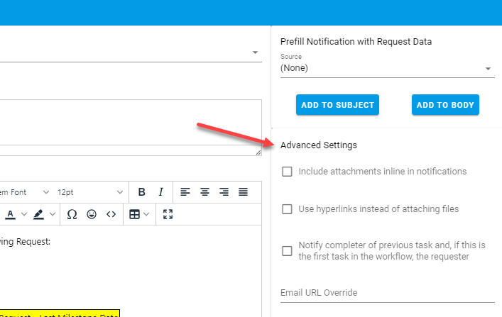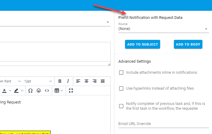 Next, choose Add To Body to add it to the email notification.