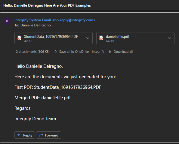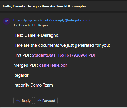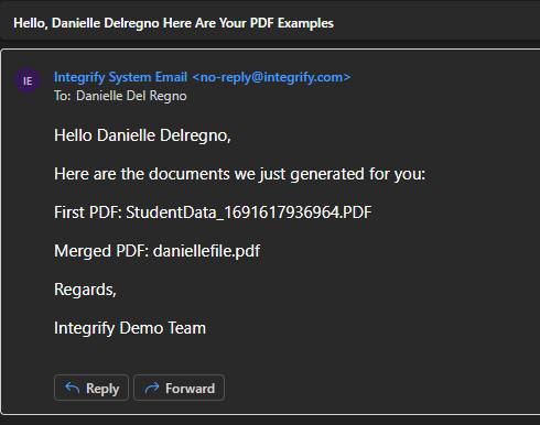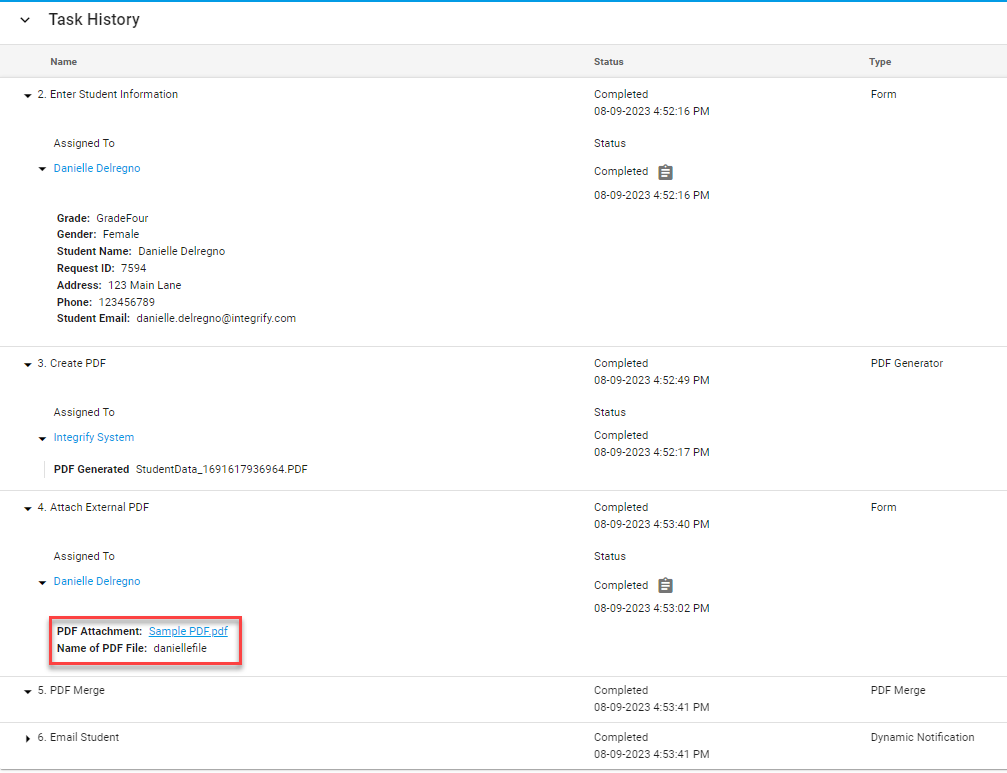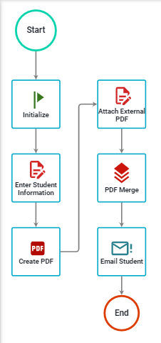 The PDF Merge task gives administrators a way to combine up to 5 PDF documents into a single file. These PDFs can be uploaded or created using our PDF Generator task.