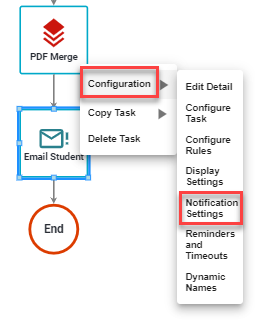 To configure the notification, right-click on the notification task, and under Configuration select Notification Settings.