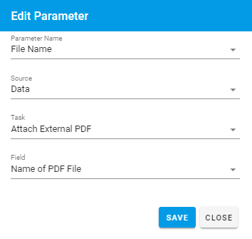 Click “Save” then “Close”. The example below will show this parameter and file name being used.