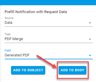 To add the Generated and Merged PDFs, use the Prefill Notification with Request Data menu.