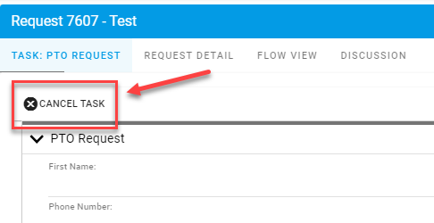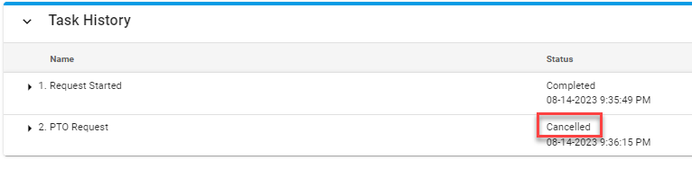 If the user selects to cancel, the request detail will show the status for the task as Cancelled.