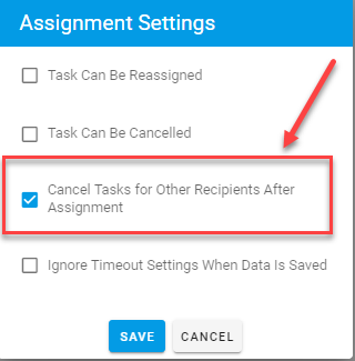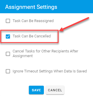 The Assignment Settings area provides additional control over what a given recipient or set of recipients can do once they have been assigned to a task.