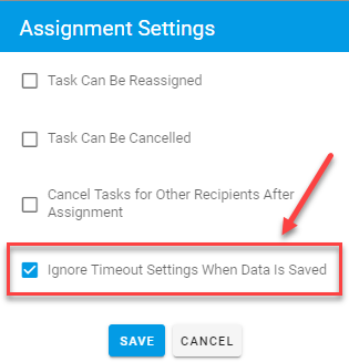 If time-based settings are defined for a task and timeouts are set, if a user uses the “save draft” option for a form task, the Integrify Task Processor service will ignore the time-based settings to allow the user to come back to the task and complete it as needed.