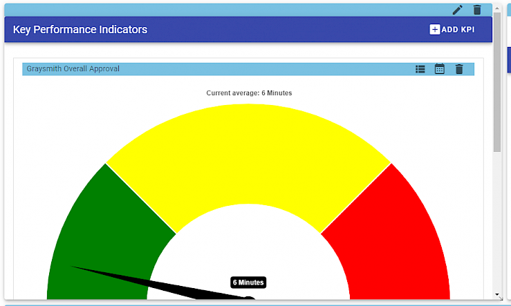 All KPIs defined for all processes are available to add to a Dashboard. See the section on creating Dashboards to learn how to create and configure Dashboards.