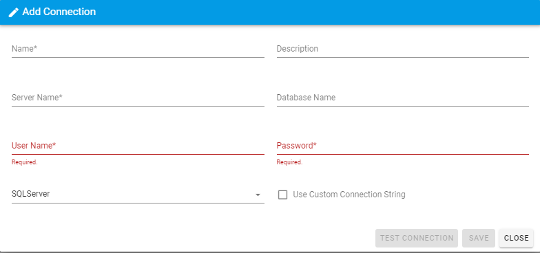 Will appear if ‘Use Custom Connection String’ is selected