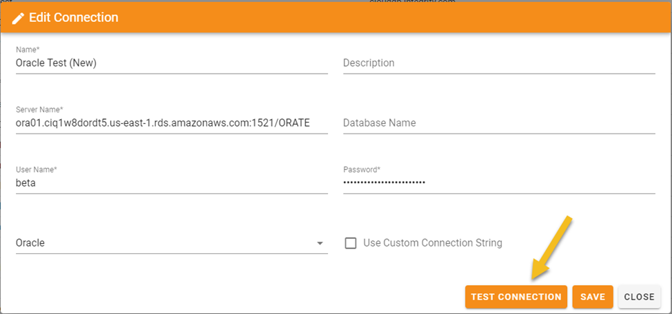 Once you have added your Database information, you can use the Test Connection button to speed up the process of testing configuration parameters.