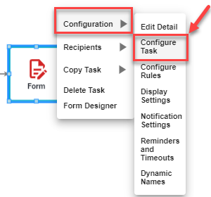 Right-click on the form task you are wishing to prefill and select Configuration and Configure Task.