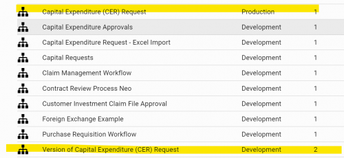 c. Once the changes are verified, the original Production processes is set to Inactive and the versioned processes is set to Production