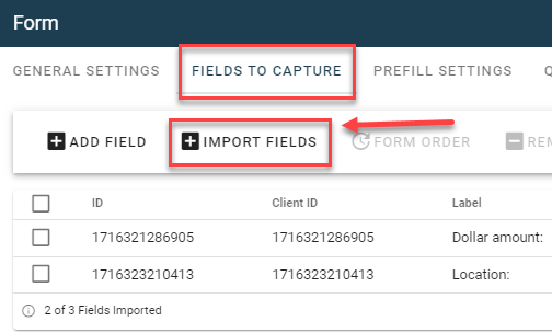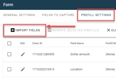 Next, under Fields To Capture and Prefill Settings, select Import Fields.