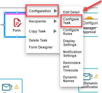 Right-click on the form task, hover over Configuration and select Configure Task.