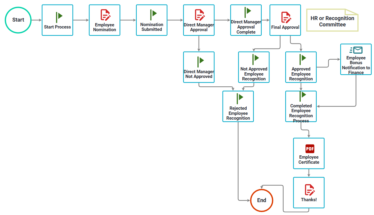 Using this process, a company can recognize a employee’s hard work. This innovative workflow leverages pictures and sounds to create an engaging nomination experience, promotes company-wide recognition, and is ready to use immediately after importing into your instance.