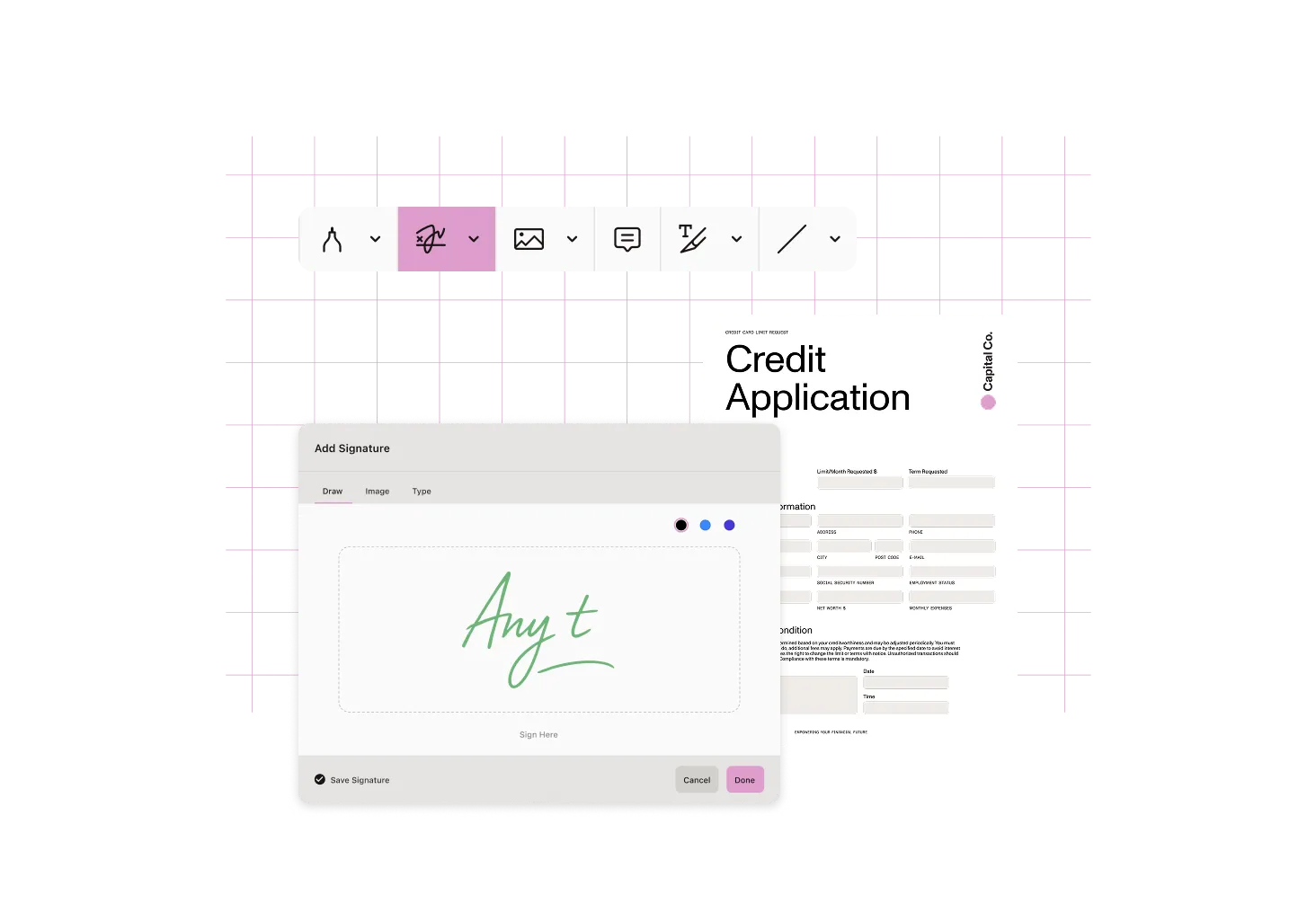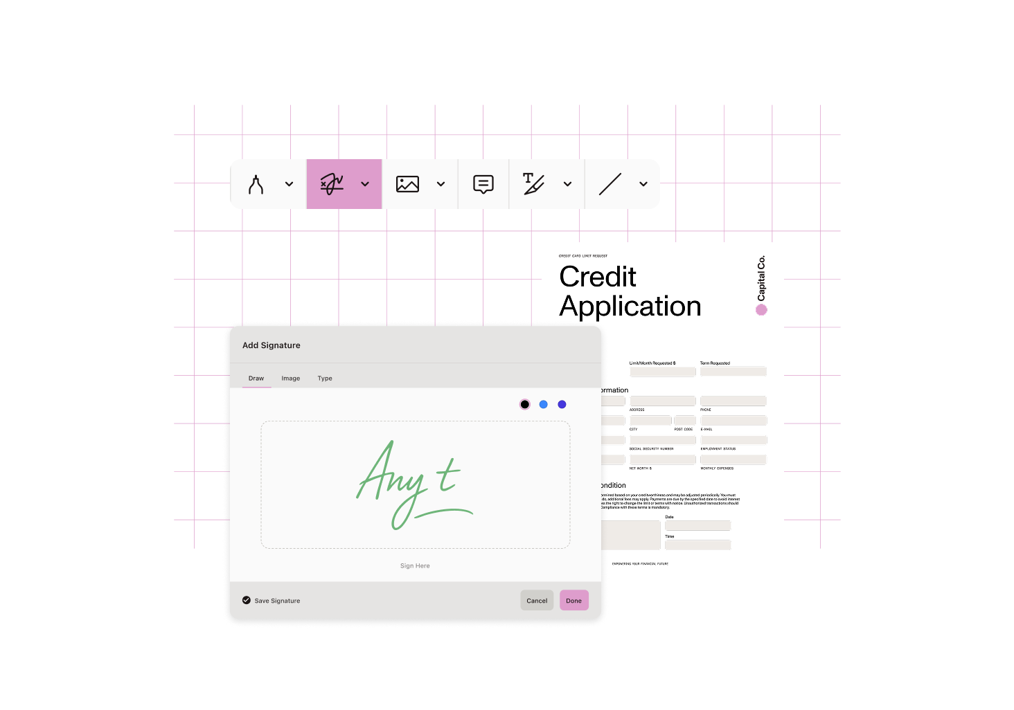 Add legally binding eSignatures using touch, stylus, mouse, or typed input. Streamline approval cycles without leaving your Teams conversation.