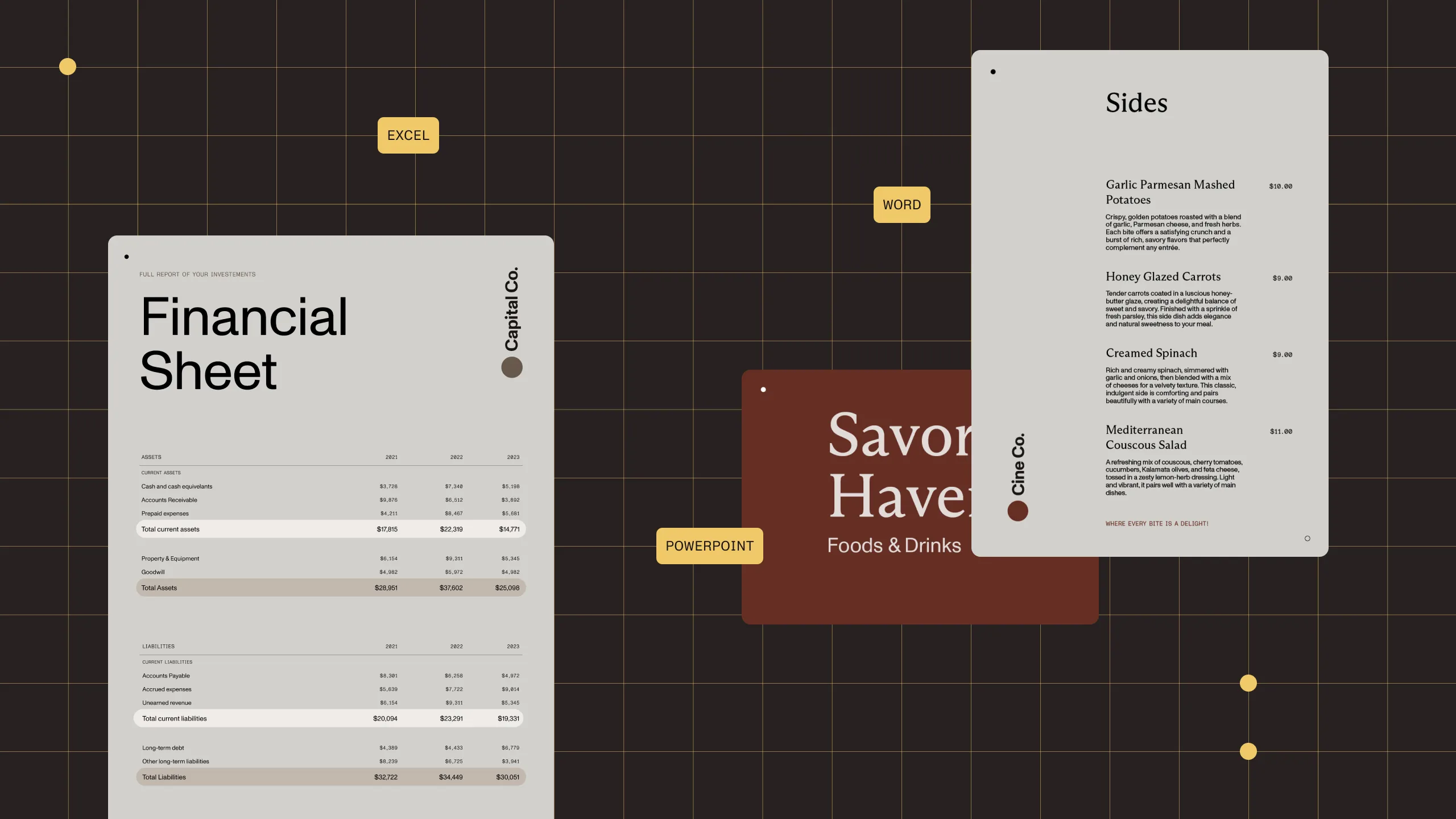 Generate DOCX, XLSX, or PPTX output directly from your browser, with no server required.