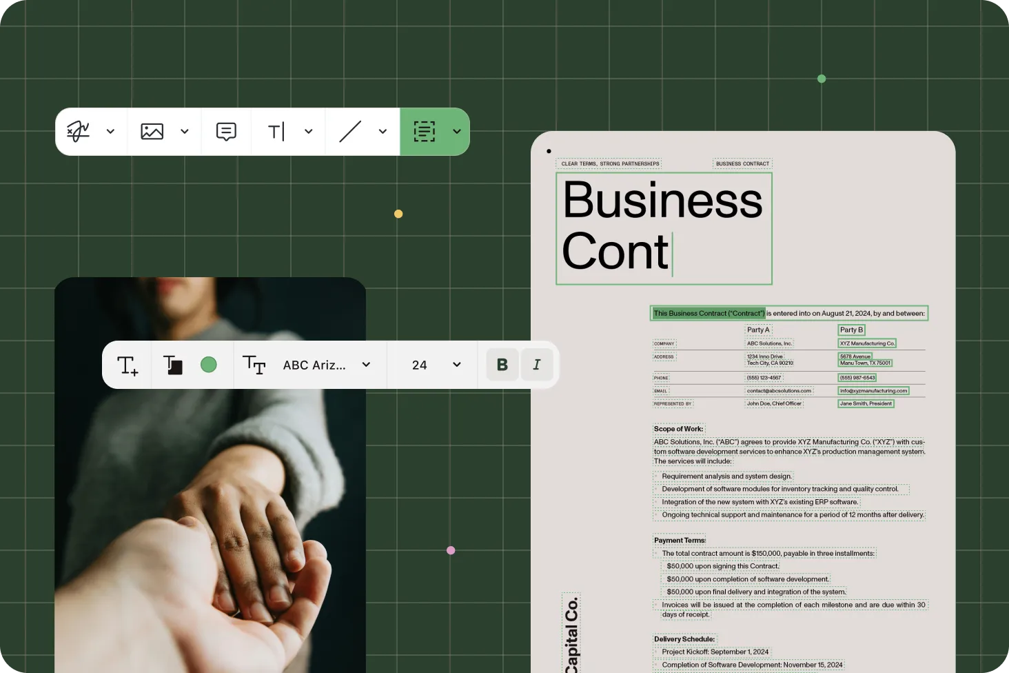In-workflow editing means you can update documents — including text, pages, and formatting — directly inside your approval or routing process, without downloading or switching apps. Nutrient lets teams make these changes securely and with full traceability.