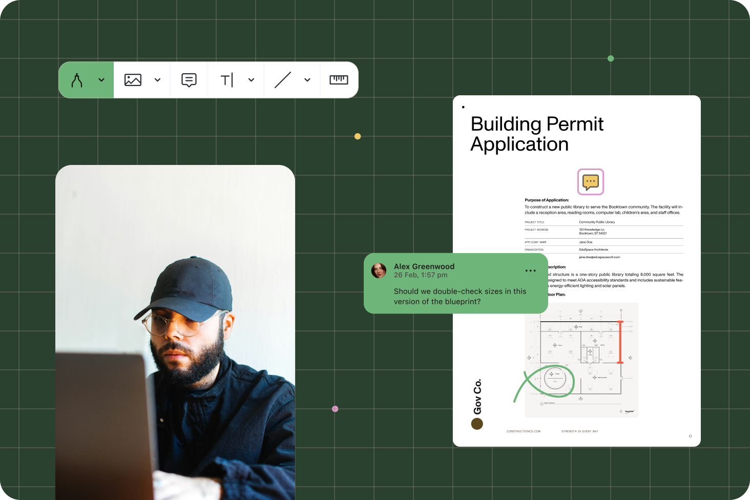 Mark up text, draw shapes, and leave visual cues to guide reviewers and clarify changes.