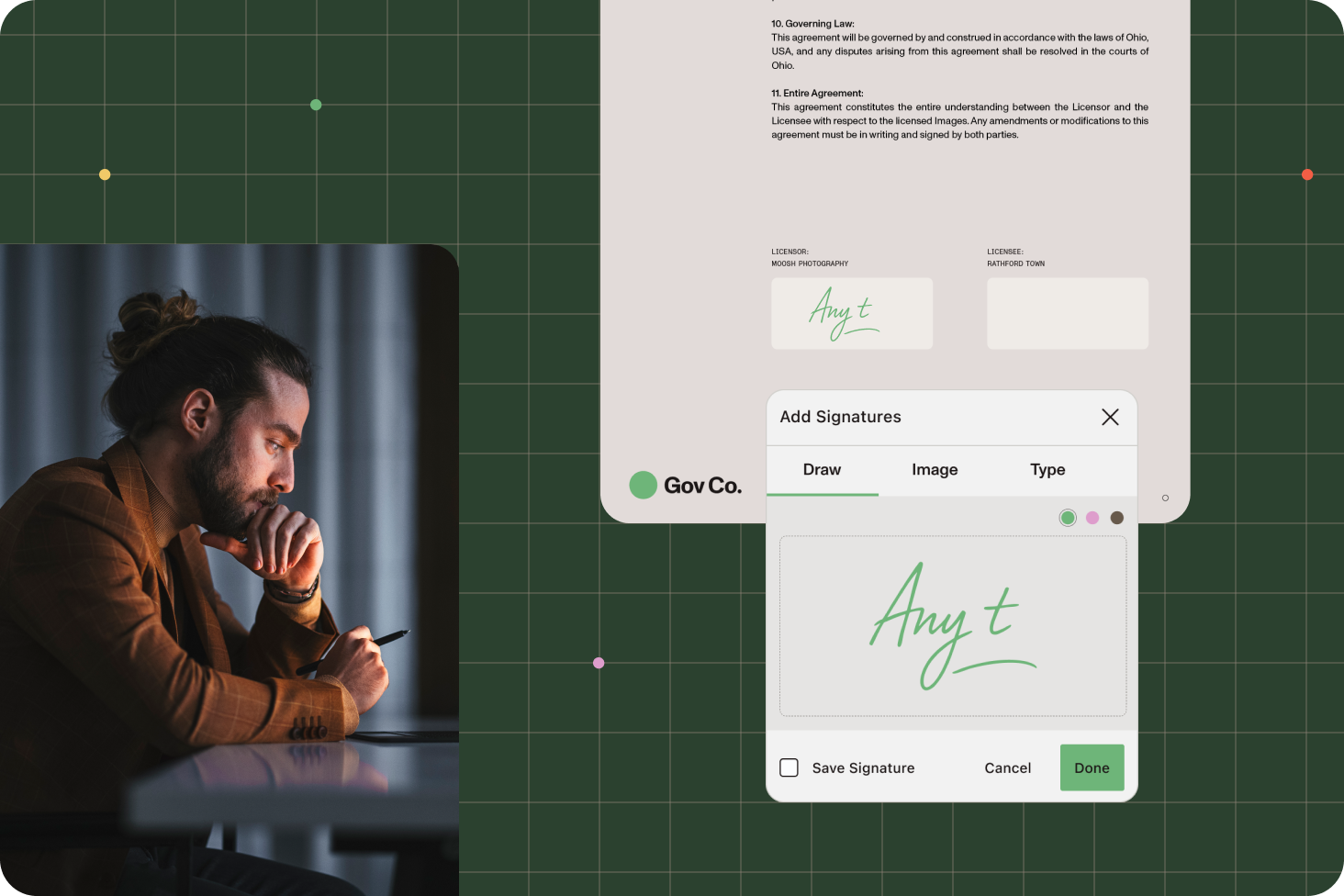 Support electronic or digital signatures, complete with logs, metadata, and verification.
